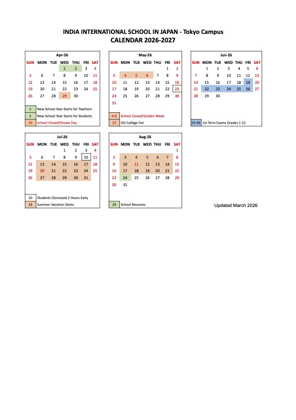 | Saturday, March 28 | Tokyo Graduation KG, 10, and 12 |